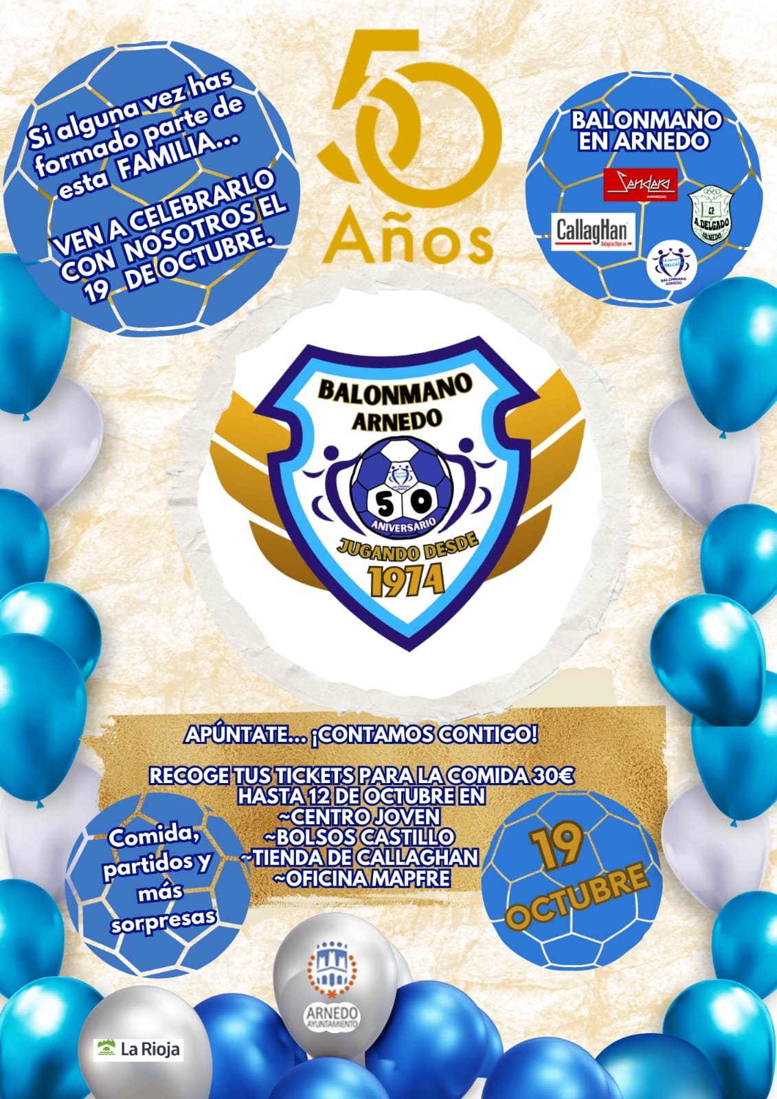 El sábado es el día en el que vamos a celebrar los 50 años del BALONMANO EN ARNEDO🎉🎊