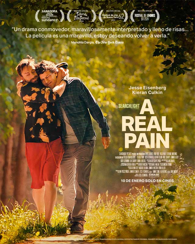Ahora, Jesse Eisenberg presenta su segunda película: A Real Pain, en la que, por primera vez, se dirige a sí mismo como protagonista. La idea surgió cuando Jesse vio un anuncio en línea sobre tours turísticos en campos de concentración en Polonia. Aquello le recordó su primera visita a Polonia y, revisitando sus fotos y recuerdos, se dio cuenta de cuál era la historia que quería contar. De familia judía asquenazí, Eisenberg era consciente de que no había conectado completamente con el trauma del Holocausto vivido por sus antepasados, así que esta experiencia personal inspiró los dilemas que enfrentan los personajes principales de su película.