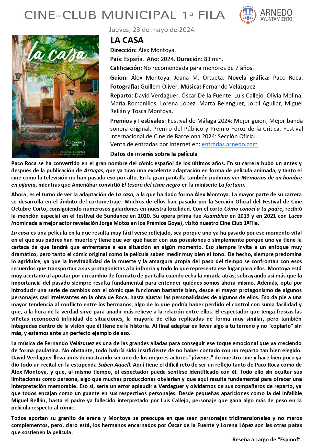 Pero los recuerdos, los secretos y las viejas disputas hacen su aparición y complican todo el proceso. ‘La casa’ es una historia que se repite todos los años en el seno de miles de familias. Las paredes del hogar observan en silencio como sus antiguos habitantes se deshacen de su pasado entre emociones encontradas.