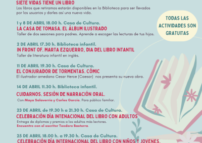 El 23 de abril se conmemora el Día Mundial del Libro y, para celebrarlo, las librerías de la ciudad salen a la calle. Mostrarán sus libros y los ofrecerán un 10 % de descuento en las compras.
