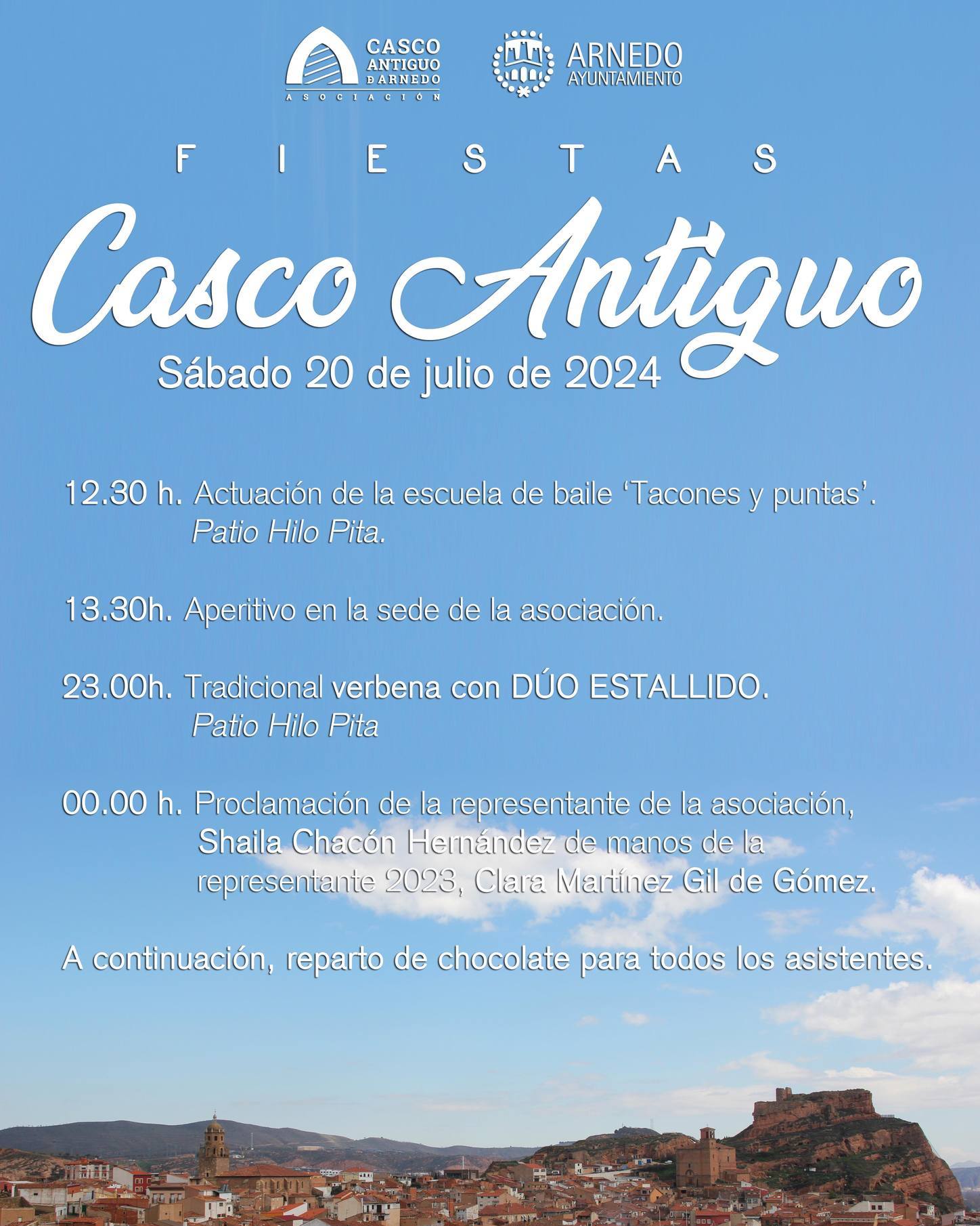 23.00 h. Tradicional verbena con DÚO ESTALLIDO patrocinado por el Ayuntamiento de Arnedo. Patio del Hilo Pita.