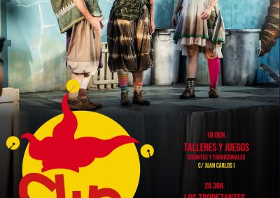 El viernes 30 de agosto, como viene siendo habitual, a lo largo de la calle Juan Carlos I, se dispondrán juegos gigantes, tradicionales y manualidades, invitando a niños y mayores a jugar juntos desde las 18.00 horas hasta las 20.30 h, donde disfrutaremos del espectáculo de calle “Los Tropezantes” de la mano de la compañía Almozandia.