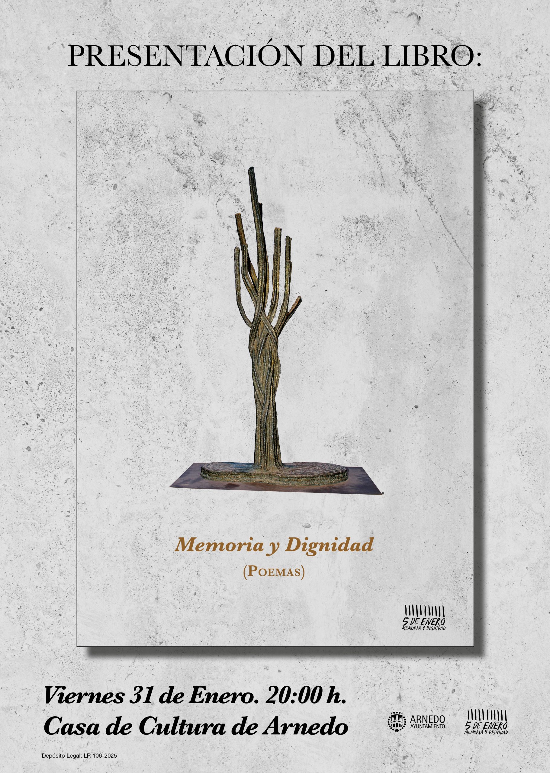 El acto tendrá lugar en la sala de Artes Escénicas de la Casa de Cultura. A las 20 horas. Con una duración no superior a la hora y 15 minutos. El libro está editado por el colectivo 5 de enero, relacionado éste con los “Sucesos de Arnedo” de 1932.
