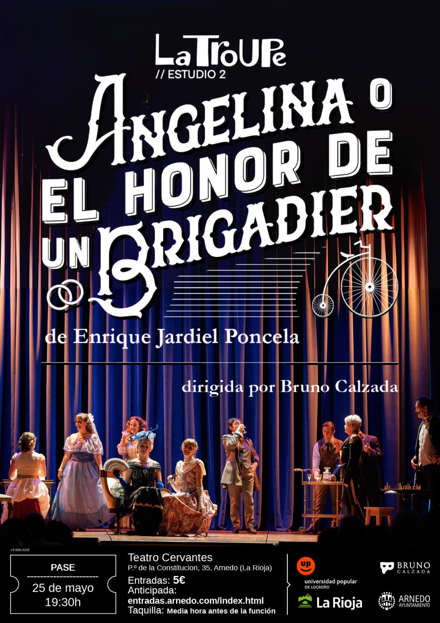 En 2016, con el estreno de ‘Ópera Pánica’ de Alejandro Jodorowsky nacía el grupo de teatro de la Universidad Popular de Logroño: La TroUPe, en la búsqueda de una feliz convivencia entre las mañas aficionadas de unos apasionados del teatro y la visión artística profesional desde la dirección de Bruno Calzada. Nos propusimos por entonces construir una pequeña compañía teatral que llevara por los escenarios riojanos un repertorio de autores hispanohablantes, especialmente cómicos, con un enfoque pedagógico y creativo a un tiempo.