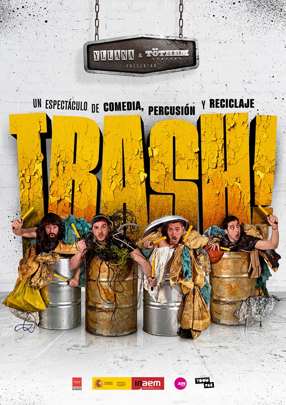 En Trash!, como todos los espectáculos de Yllana, no hay espacio para la desconexión o el aburrimiento; ni una concesión a que la mente se escape a casa a esa colada que se ha quedado sin tender o a ese informe que hay que acabar de rellenar. A lo largo de una hora y media nos quedamos sin aliento desde la butaca ante los ejercicios de virtuosismo rítmico y buenrollero de los que hacen gala los operarios de la central de reciclaje. Ante nuestros ojos cubos, cajas de herramientas, celo, bombonas de butano, bolsas de basura, balones de baloncesto, botellas y un larguísimo y asombrosísimo etcétera se convierten en material musical dando vida a temazos como el Para Elisa, Stand by me o We Will Rock You.