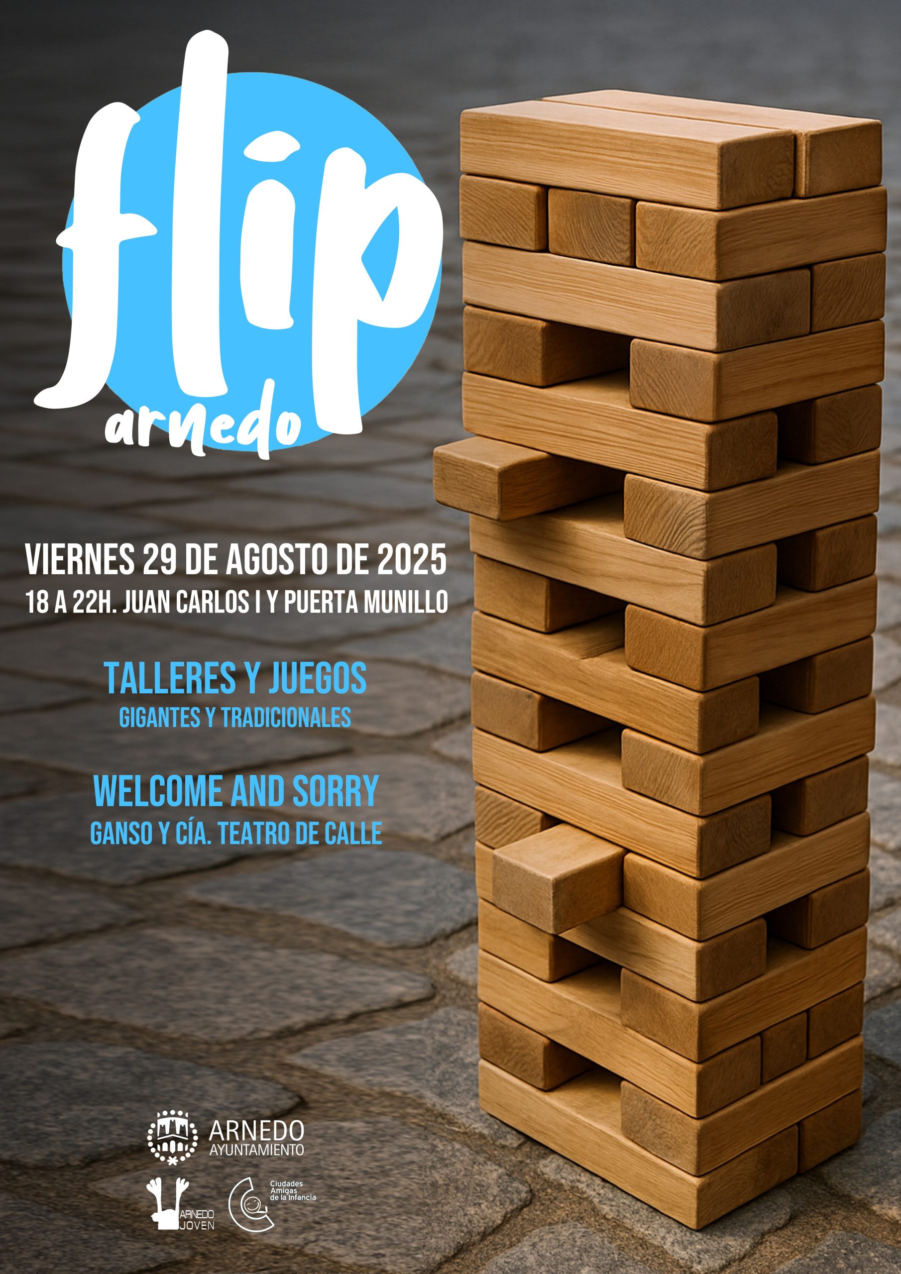 El festival nació como un pequeño homenaje al festival de juegos «Flip» de la ciudad hermanada de Arnedo en Francia, Pathernay, y desde su inicio ha sido una cita esperada tanto por niños como por mayores. A lo largo de la tarde, desde las 18:00 hasta las 20:30 horas, la calle Juan Carlos I se transformará en un espacio de juegos gigantes, tradicionales y manualidades, donde pequeños y grandes podrán disfrutar juntos de una tarde de diversión.