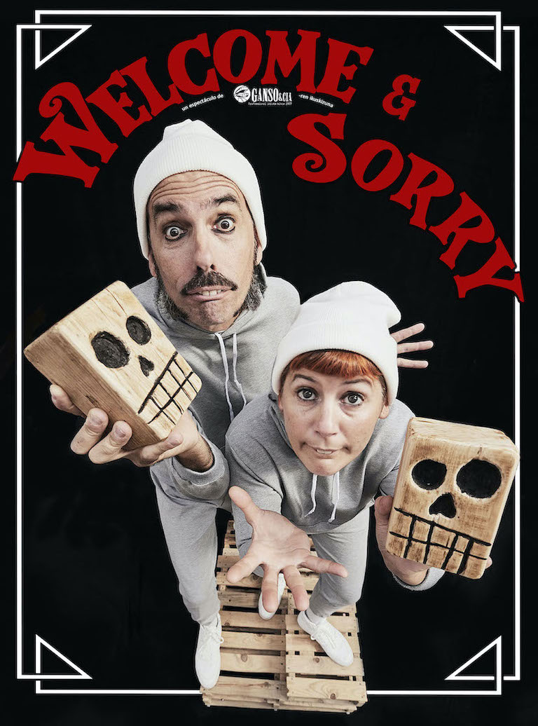 Welcome & Sorry es un espectáculo de teatro de calle que ofrece una mirada irónica y divertida a los grandes clásicos y los estereotipos que los rodean, con una comedia gestual y elementos de clown que cautivan a todos los públicos. Ganso & Cía es una pequeña compañía teatral fundada por Gorka Ganso y Cecilia Paganini, con sede en Durango (Euskadi), que crea espectáculos que exploran la humanidad de los personajes y la comedia de lo cotidiano.