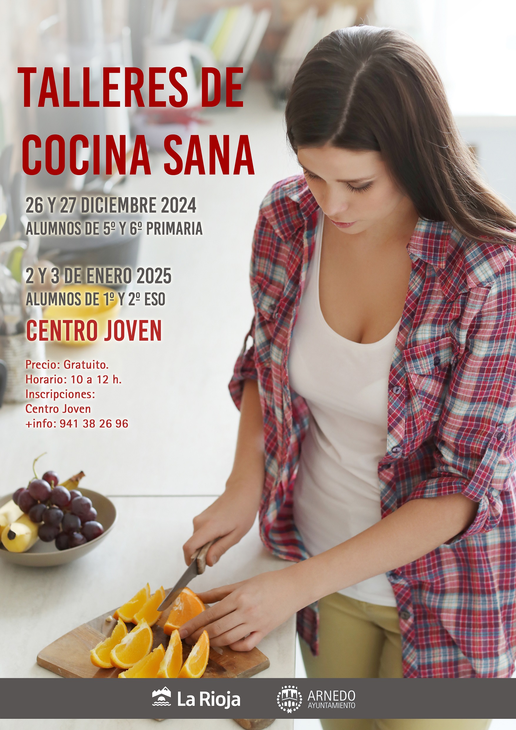 Talleres de Cocina Sana. Centro Joven. Gratuito. Dirigido a alumnos de Primaria y ESO. Plazas: 12 por taller.