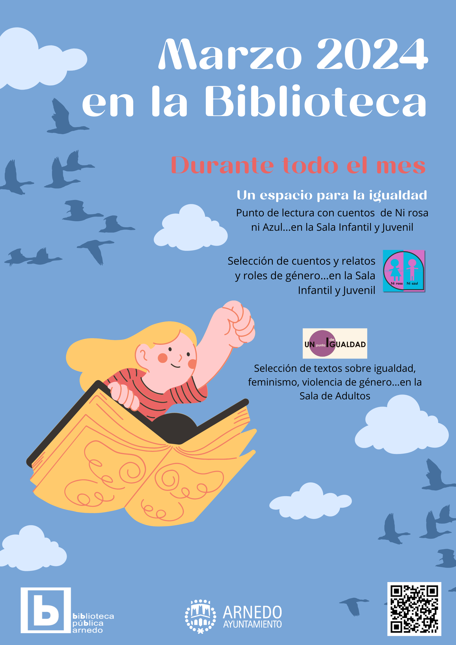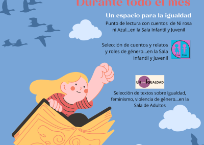 * Un punto de igualdad. Centro de interés en la Biblioteca de Adultos sobre igualdad, feminismo y violencia de género, con selección de libros de relatos, cómics, biografías e información sobre igualdad, derechos de la mujer, visibilidad, acoso, etc.