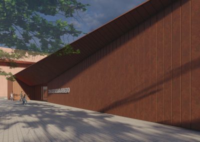 Además, el pliego preveía la realización de obras complementarias o mejoras a las recogidas en proyecto, obras que incluían la instalación de un descalcificador, el revestimiento del falso techo del vesítubulo de entrada mediante bandejas de chapa de acero corten en consonancia con la fachada, las mejoras de urbanización y ajardinamiento de los espacios de acceso o la instalación de los asientos en la grada.