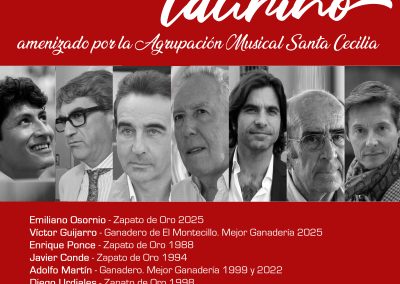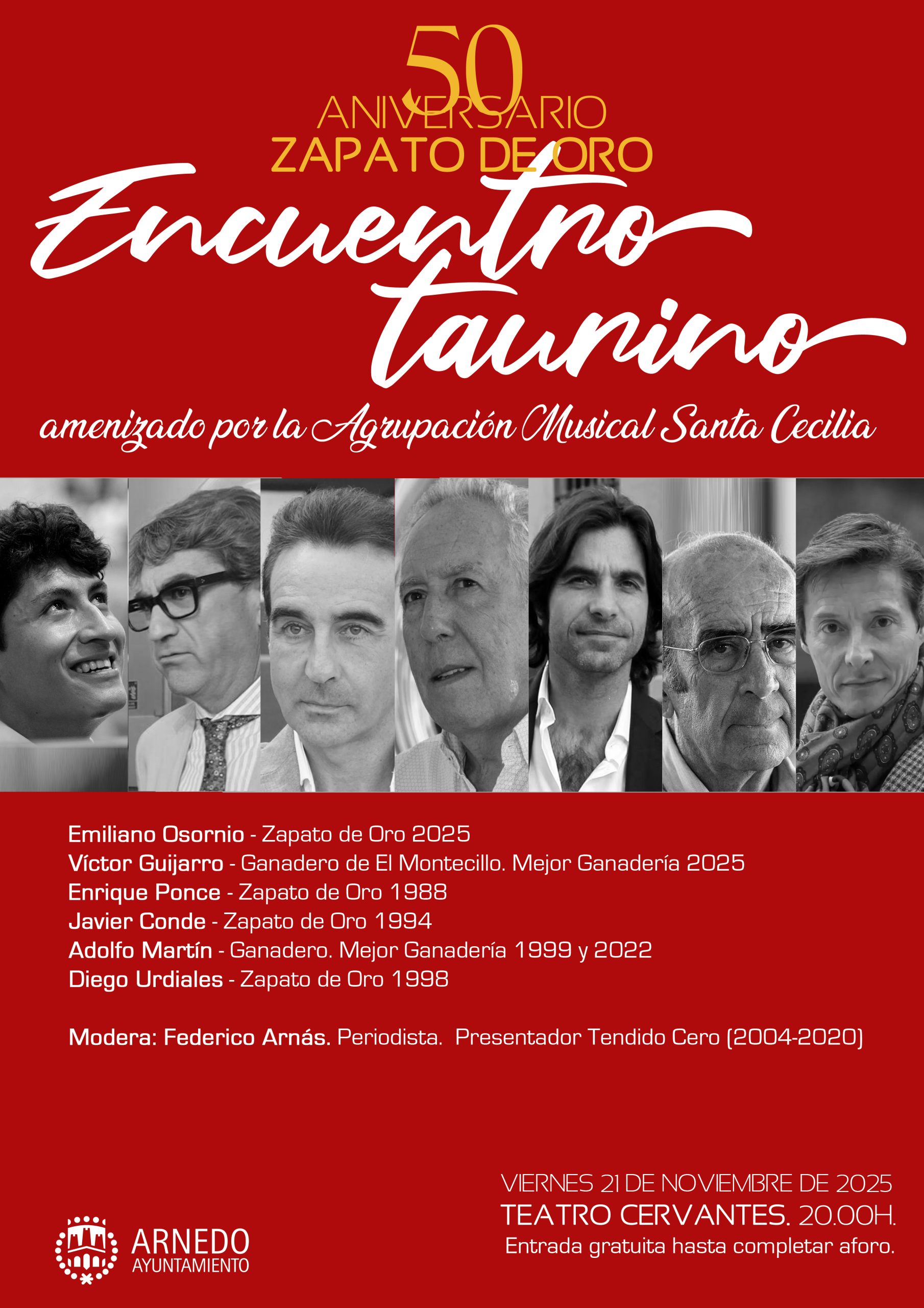 Se trata de un encuentro taurino en el que distintas personalidades del mundo del toro se darán cita para hablar sobre la feria y la evolución de la tauromaquia. En el acto participarán cuatro ganadores del Zapato de Oro, desde el más reciente, Emiliano Osornio (2025), hasta figuras consagradas como Diego Urdiales (1998), Javier Conde (1994) y Enrique Ponce (1988).