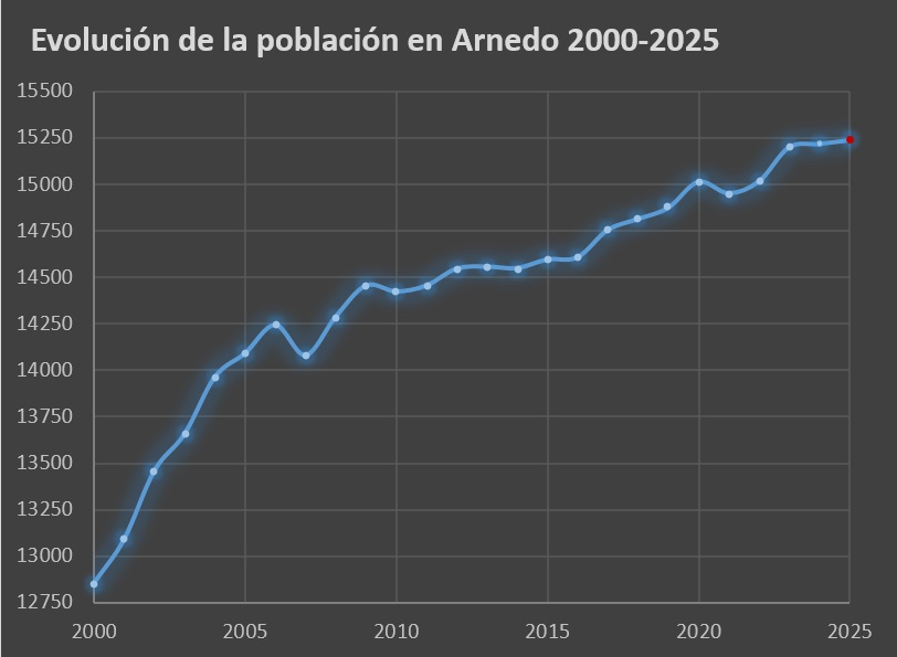 Según los datos obrantes en el Padrón Municipal, la población en Arnedo a 1 de enero de 2025 alcanza ya los 15.239 habitantes. Estos datos se remitirán al INE para su depuración hasta conocer la cifra oficial en los últimos meses de 2025.