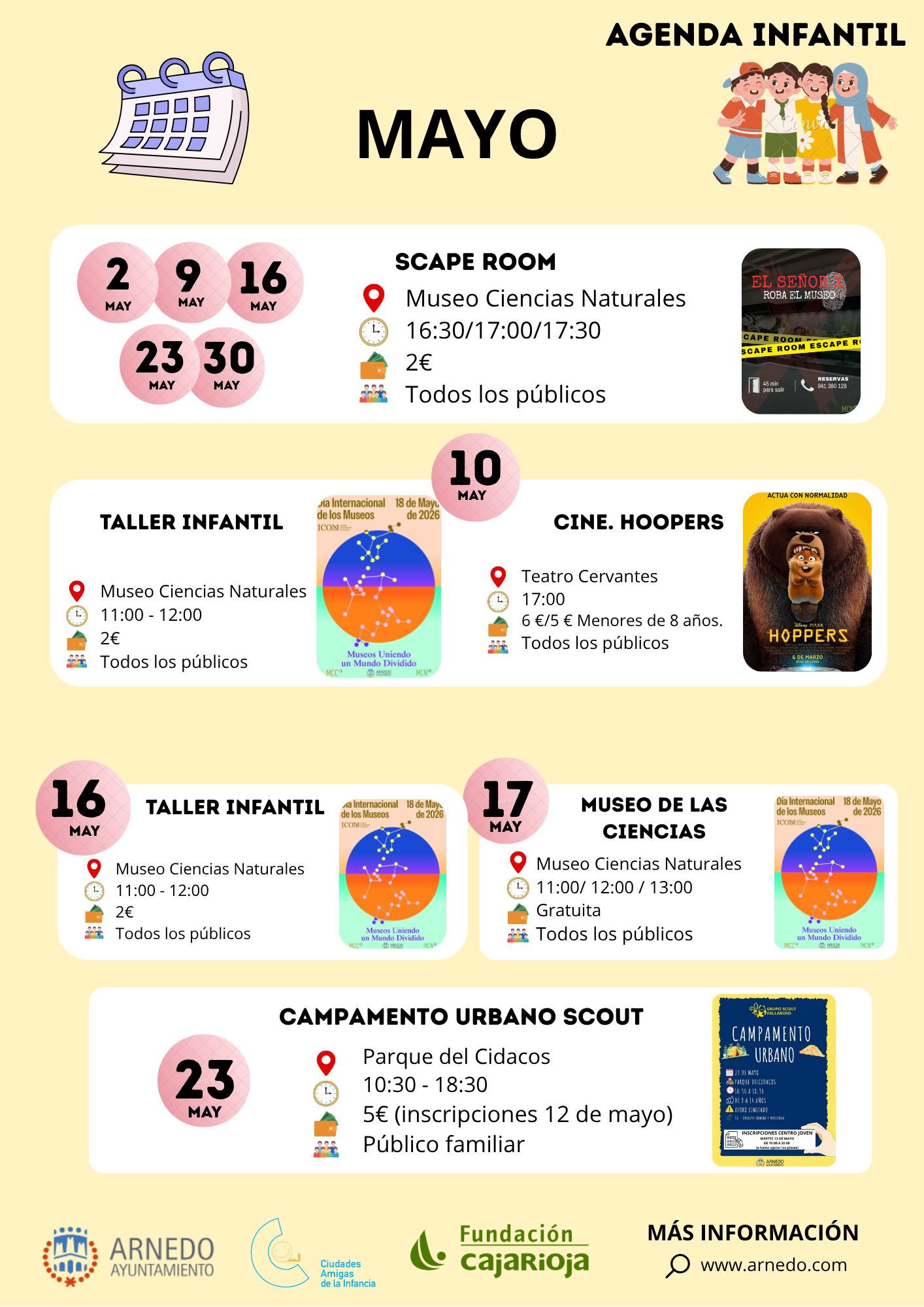 La agenda infantil de mayo en Arnedo llega con un programa diverso que invita a las familias a llenar el mes de planes culturales y de ocio pensados para los más pequeños.