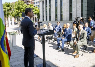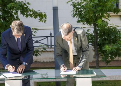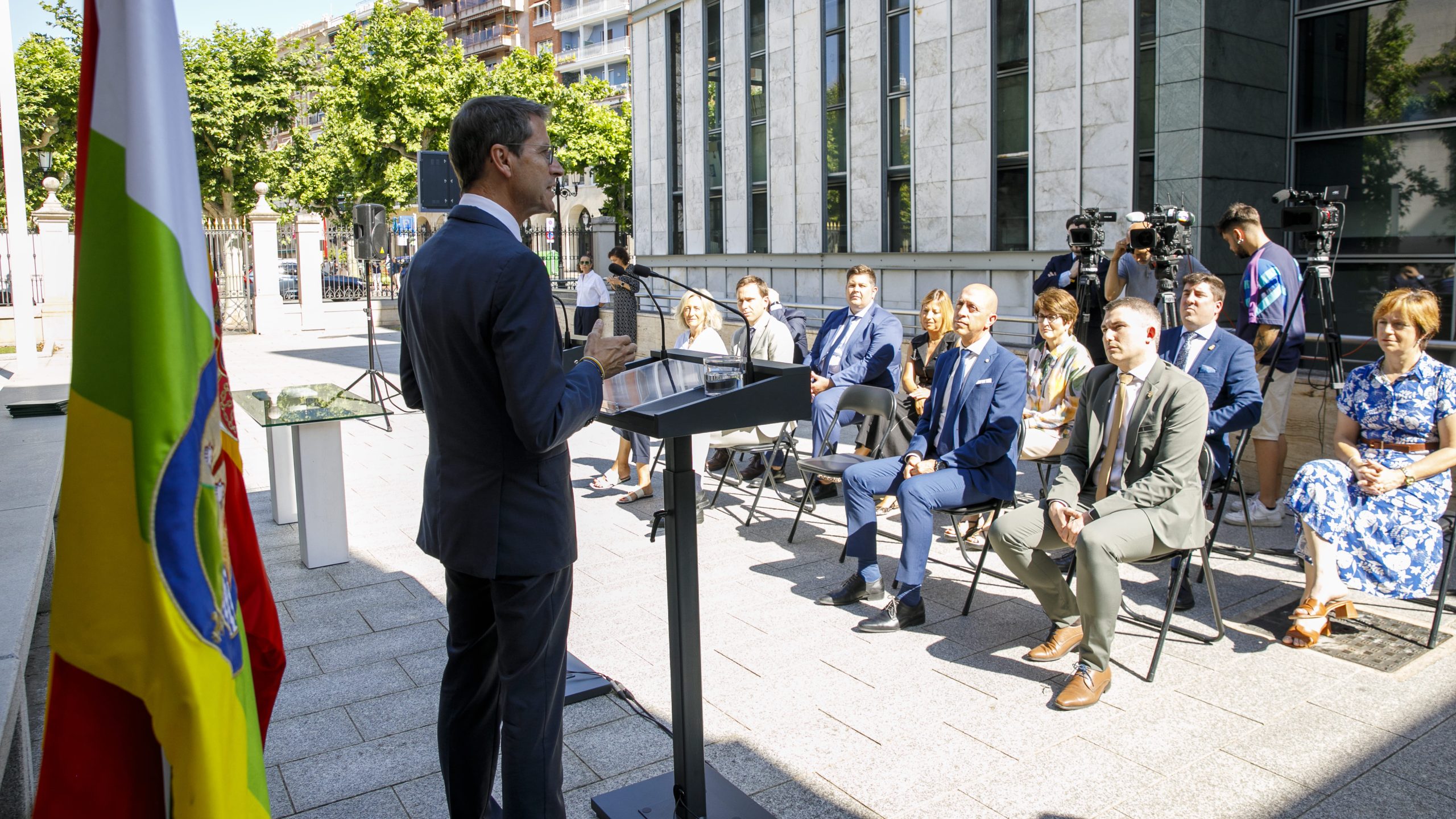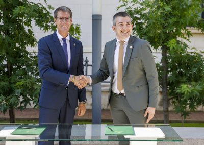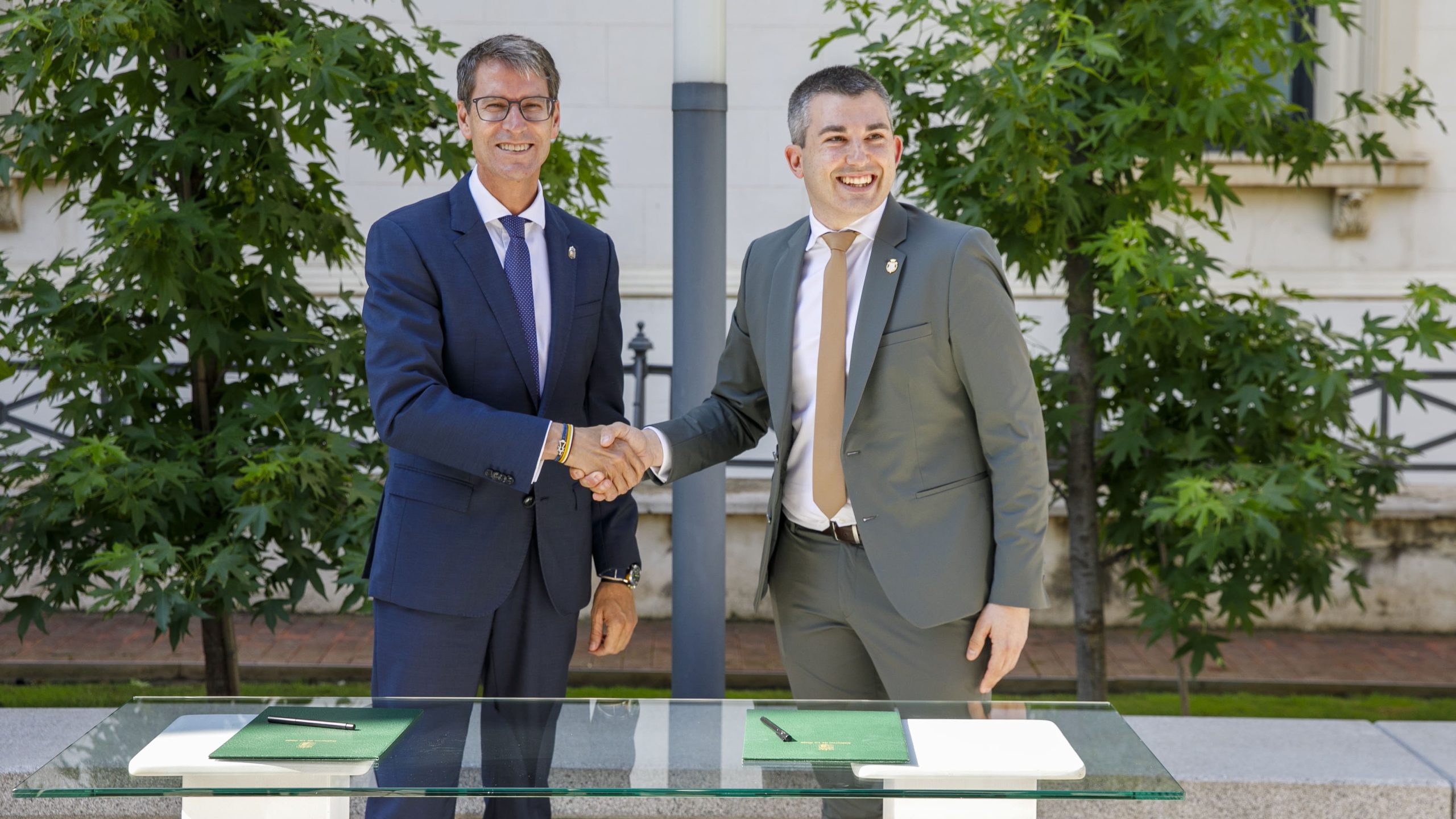 El alcalde en funciones de Arnedo, Raúl Domínguez, ha participado esta mañana en el acto de firma de los convenios de cabecera entre el Gobierno de La Rioja y las principales localidades de la comunidad, celebrado en Logroño. El encuentro ha estado presidido por el presidente del Gobierno de La Rioja, Gonzalo Capellán, y ha contado también con la presencia del consejero de Política Local, Infraestructuras y Lucha contra la Despoblación, Daniel Osés, y del director general de Política Local, Óscar León, así como de representantes de los ocho municipios beneficiarios.