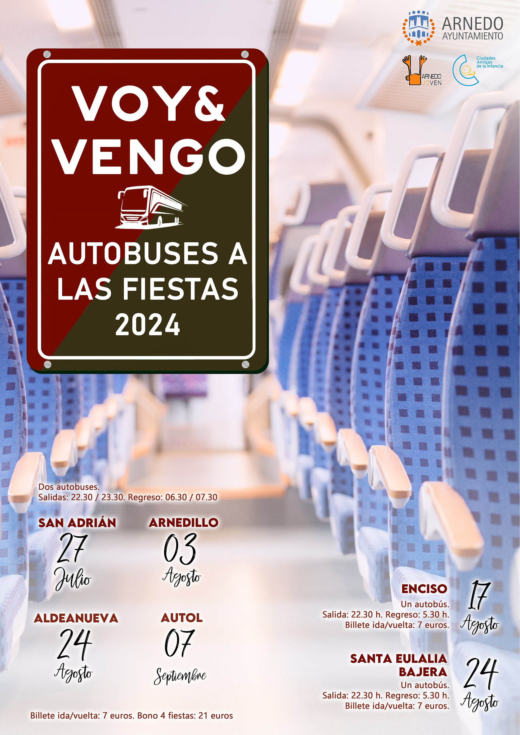 - 3 de agosto – Sábado Fiestas de Arnedillo (2 autobuses de 60 plazas) Salidas a las 22.30/23.30 horas. Regreso 06.30/ 07.30 horas.