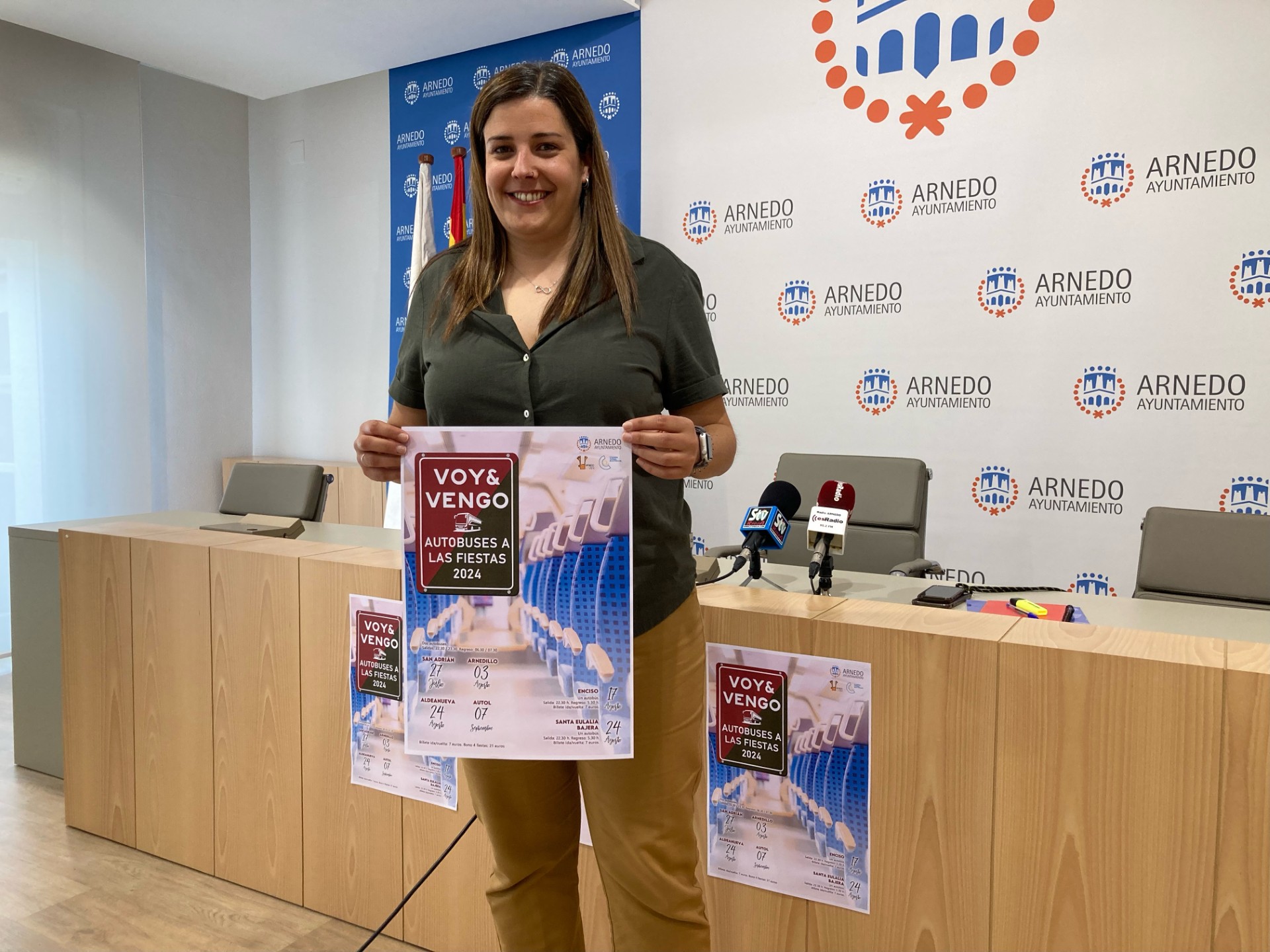 La Concejala de Juventud, Sandra Rodríguez Sebastián, ha presentado esta mañana el popular servicio «Voy y vengo» de autobuses a las fiestas de los pueblos, que se desarrollará a lo largo de varios sábados de este verano.