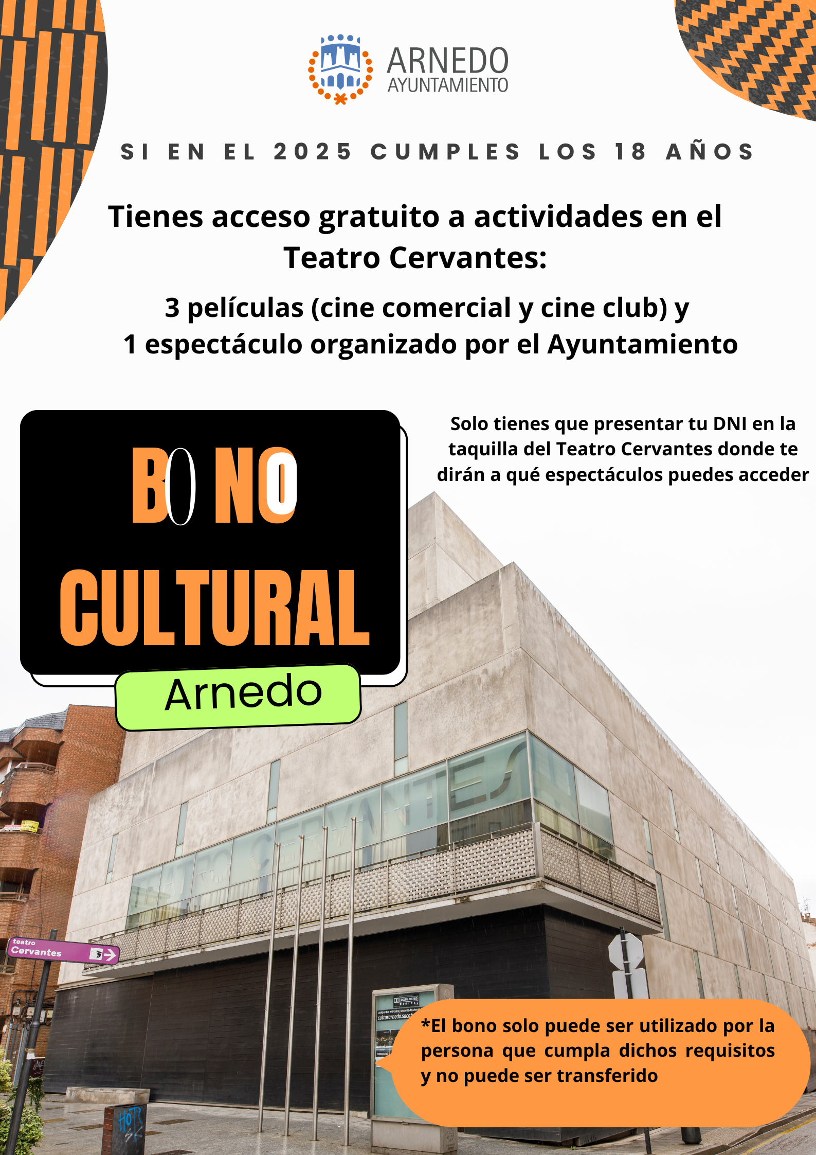 El objetivo de dicho bono es promover el acceso a las actividades culturales, y en concreto las de artes escénicas desarrolladas en el Teatro Cervantes, de los jóvenes arnedanos de 18 años cuya formación o dificultad de acceso al mercado laboral, limitan su capacidad económica para asistir a este tipo de eventos.