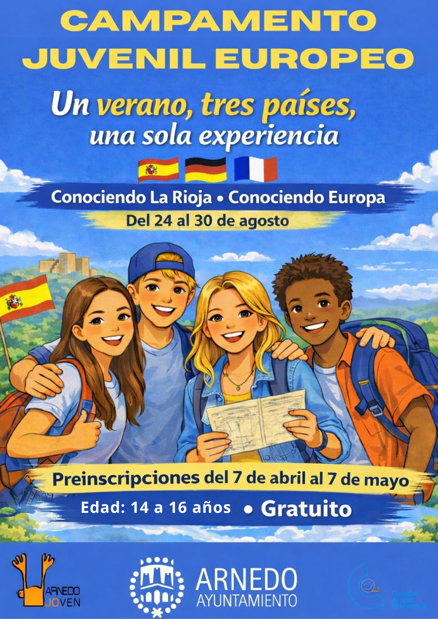 El campamento se celebrará del 24 al 30 de agosto de 2026 y reunirá a un total de 40 jóvenes de entre 14 y 16 años procedentes de España, Alemania y Francia, de los cuales catorce plazas estarán destinadas a jóvenes de Arnedo. Durante una semana, los participantes convivirán en un entorno educativo, natural y cultural, compartiendo experiencias que fomenten el conocimiento mutuo y la convivencia entre jóvenes europeos.