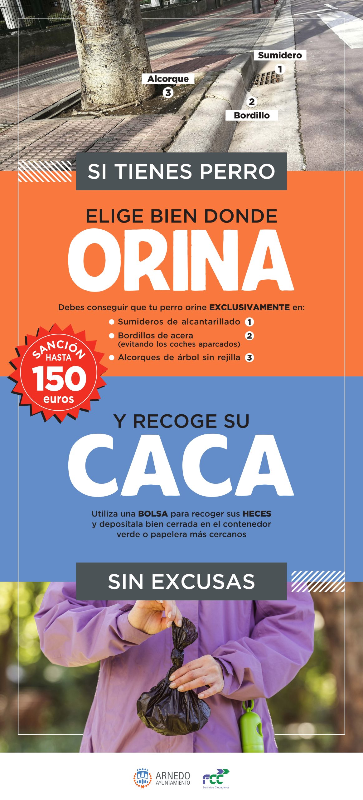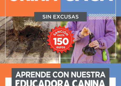 Por otra parte, durante la campaña se instalarán banderolas informativas en señales y farolas y cartelería en esquinas y elementos de mobiliario dañados por los orines de perro (indicando donde se puede orinar y donde no), además de tótems informativos en el Ayuntamiento y otras dependencias municipales.