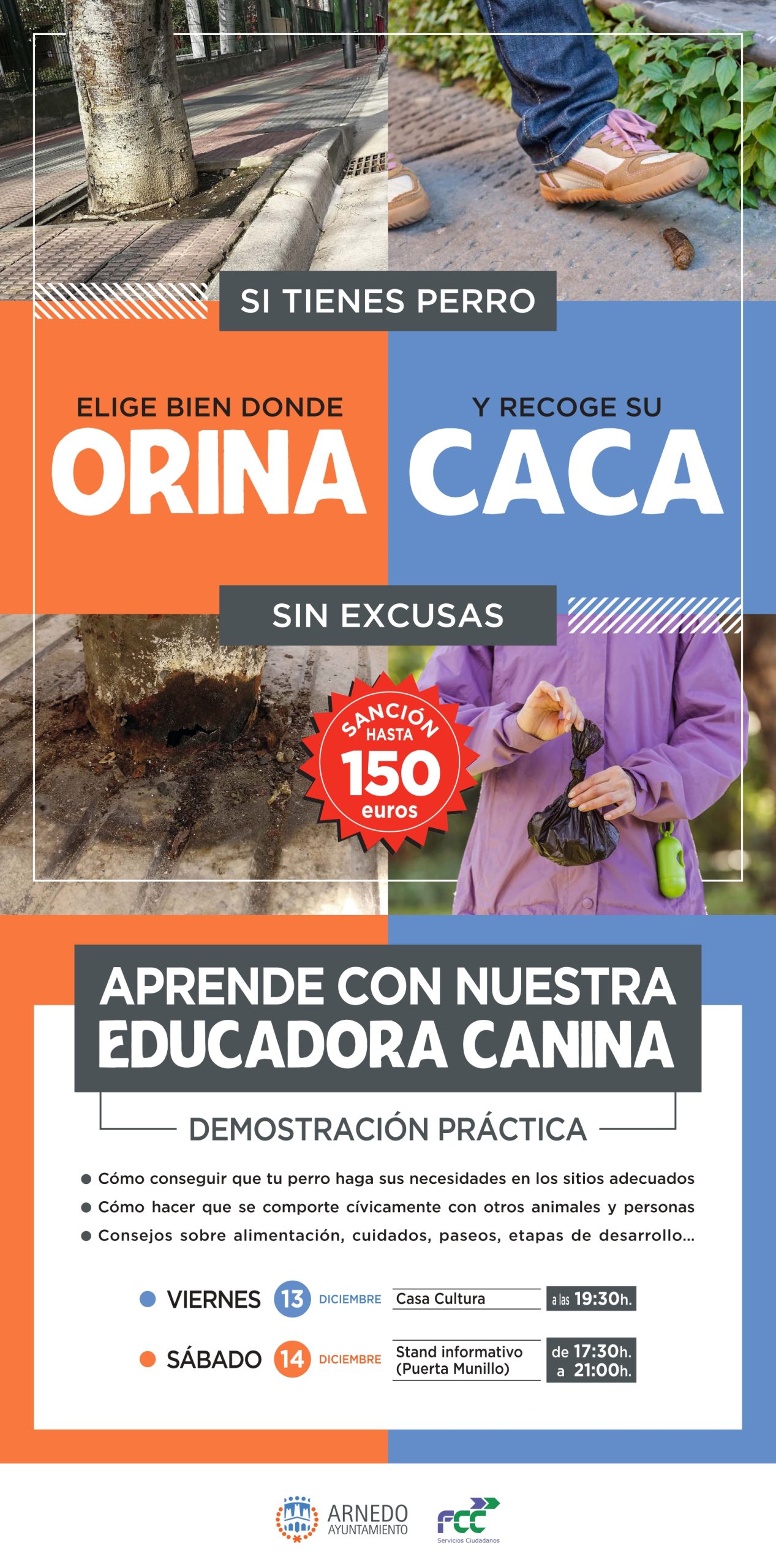Además, el viernes 13 de diciembre a las 19:30 una educadora canina profesional ofrecerá una breve charla en la Casa de Cultura dirigida a dueños de mascotas en la que se profundizará en cómo educar a los perros para que orinen en los lugares permitidos, así como en otros aspectos de interés sobre el cuidado de mascotas como la alimentación canina, paseos adecuados o etapas de desarrollo. Al finalizar la ponencia se responderá a las preguntas de los asistentes.