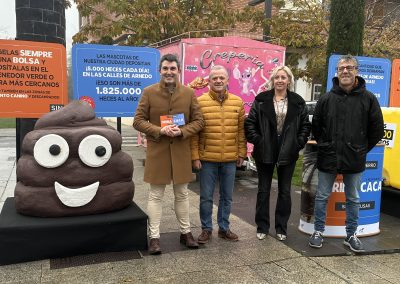 La acción principal se desarrollará en un llamativo stand informativo atendido por dos educadores ambientales que incluye dos grandes esculturas y cartelería explicativa que nos hace reflexionar sobre las sorprendentes cantidades de heces y pis producidas cada año por las mascotas de Arnedo.