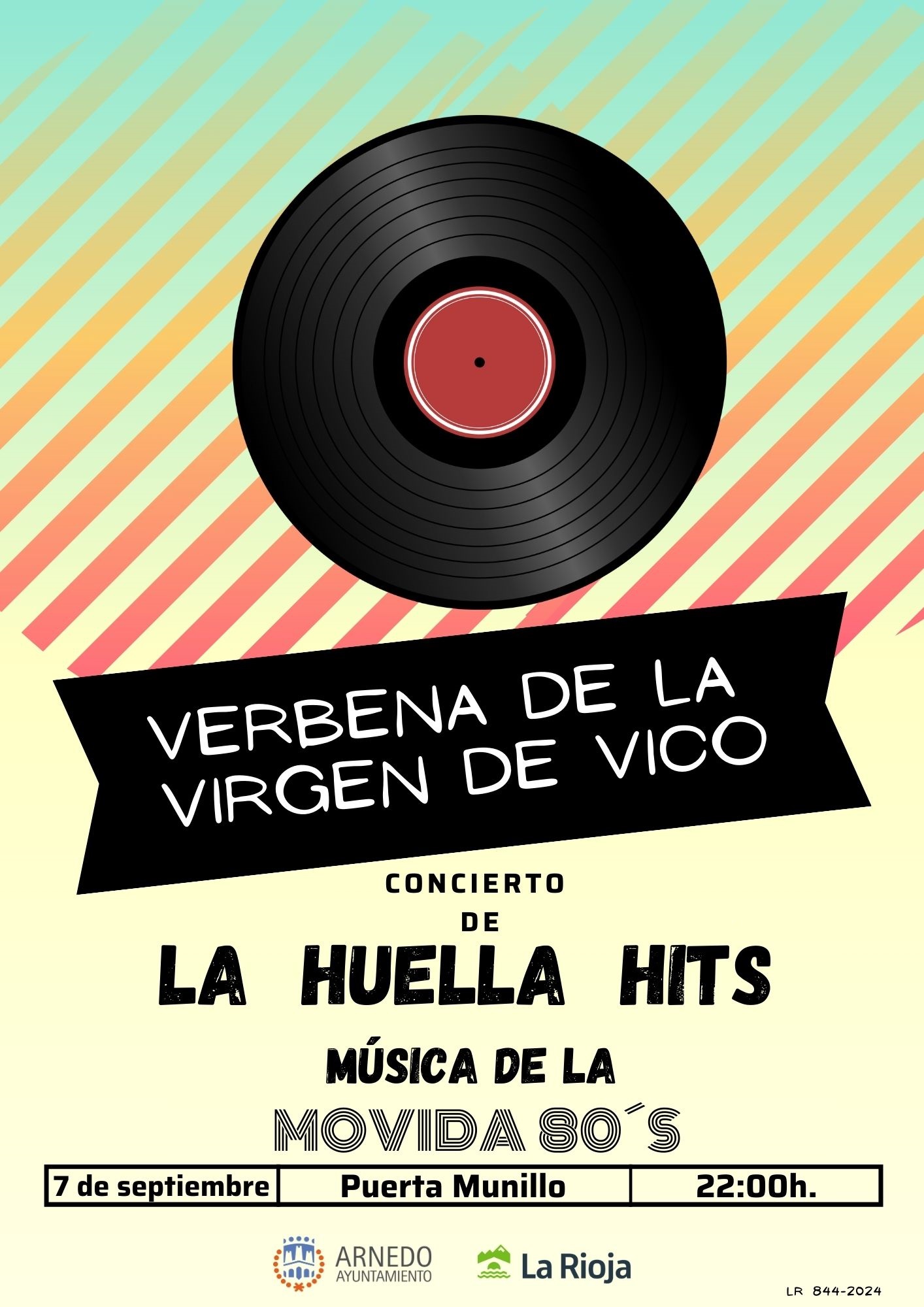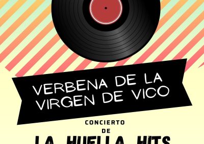 - El día 7 de septiembre a las 22:00 h. en la Puerta Munillo, celebraremos la tradicional Verbena de la Virgen de Vico. En esta ocasión contaremos con La Huella Hits un maravilloso tributo de la música de los 80`s.