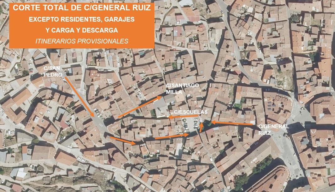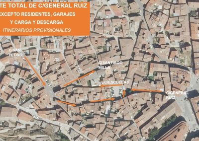 La entrada a esta vía estará permitida desde la calle San Pedro, realizando la salida por la calle Escuelas.