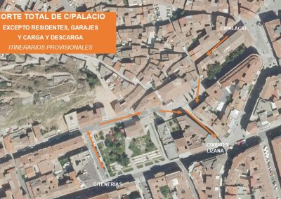 En la calle Palacio se producirá un corte total, excepto para el acceso a garajes y para carga y descarga cuyo acceso se realizará por calle Palacio y la salida por Virrey Lizana.