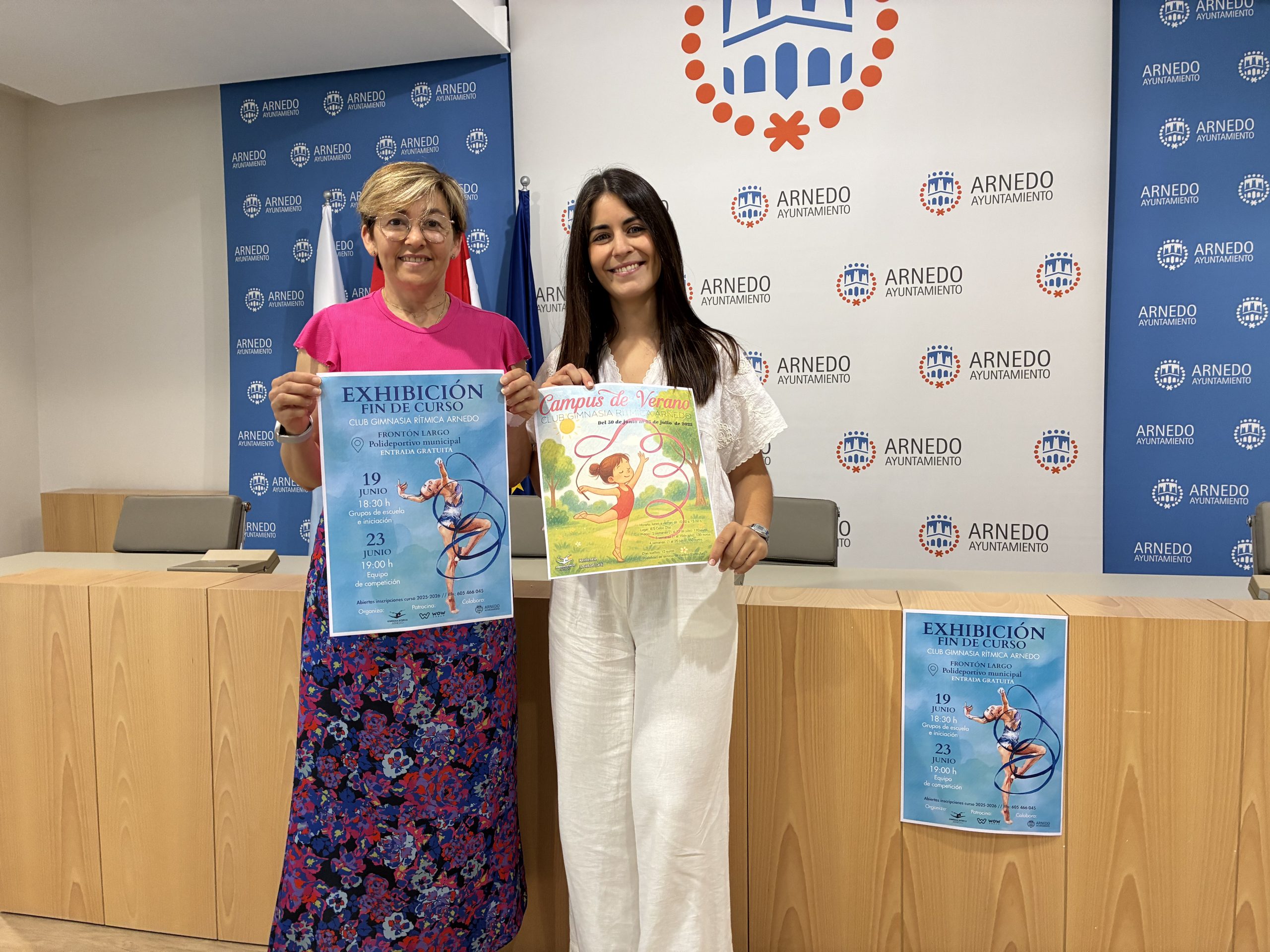 La directora del Club Gimnasia Rítmica Arnedo, Sofía Ezquerro, y la concejal de Deportes, Violeta González, han presentado en rueda de prensa las actividades de final de curso con las que el club pondrá el broche a una intensa temporada. La programación incluye dos exhibiciones abiertas al público y un campus de verano para niñas y niños de todas las edades.