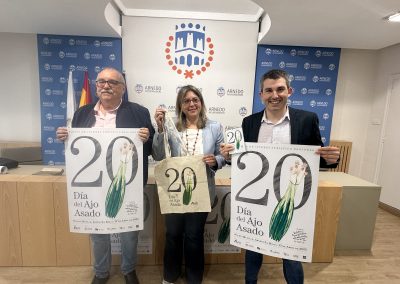 La Alcaldesa de Arnedo, Rosa Herce, el Presidente de la Asociación Casco Antiguo, José Mª Martínez de Quel y el concejal de Turismo, Raúl Domínguez, han presentado en la mañana de este jueves 10 de abril la vigésima edición del Día del Ajo Asado, declarada fiesta de Interés Turístico Regional en 2023, que se celebrará, como viene siendo habitual, en la mañana de Jueves Santo el próximo 17 de abril.