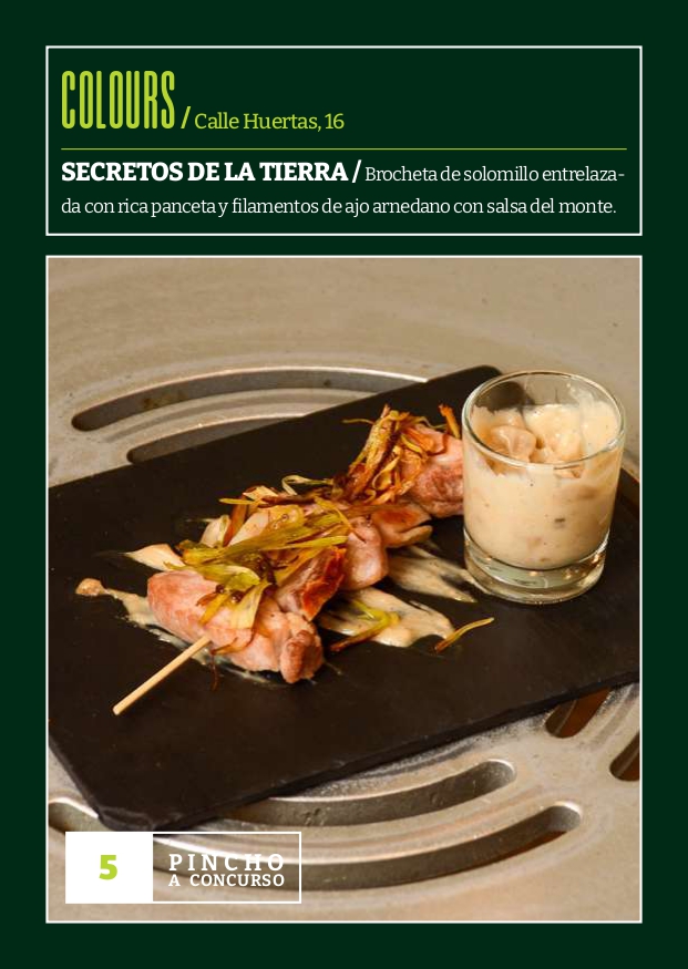 En esta edición, por primera vez, además de los tres premios del jurado se ha instaurado el premio del público en base a los votos recogidos a través de Instagram que ha recaído en los ‘Secretos de la tierra’ de Colours: una brocheta de solomillo y panceta con filamentos de ajo y salsa del monte. Aloha y Four Crazy han sido junto al ganador los pinchos que han recibido un mayor número de votos.