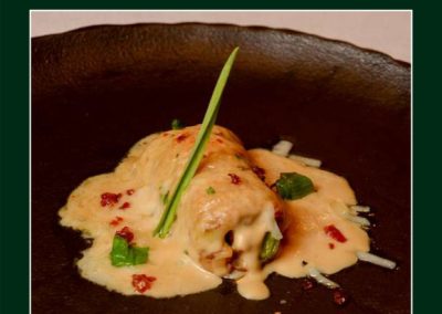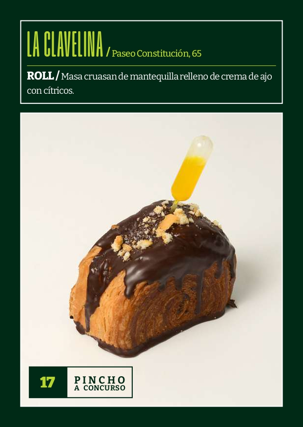 Hace aproximadamente un año, Pastelería La Clavelina comenzó a comercializar sus ‘New York Rolls’, masa de cruasán de mantequilla rellena con crema de pistacho, chocolate, avellana, galleta lotus, queso… y ahora también de crema de ajo. Esta es la propuesta con la que la pastelería arnedana concurrió a la Ruta del Pincho de Ajo 2024 y que le ha valido el primer puesto en una arriesgada mezcla de sabores donde chocolate, crema de ajo asado y cítricos se dan la mano.