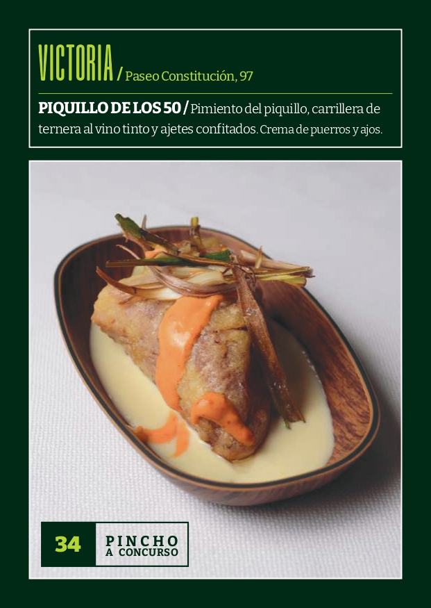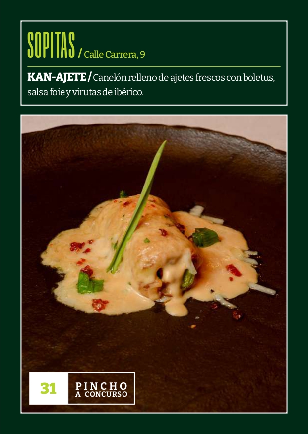 El Restaurante Sopitas ha sido el segundo clasificado en esta edición con su ‘Kan-Ajete’, un canelón relleno de ajetes frescos con boletus, salsa foie y virutas de ibérico, mientras que Victoria ha conseguido la medalla de bronce con su ‘Piquillo de los 50’ un pimiento relleno de carrillera al vino tinto, ajetes confitados y aderezado con una crema de puerros y ajos.