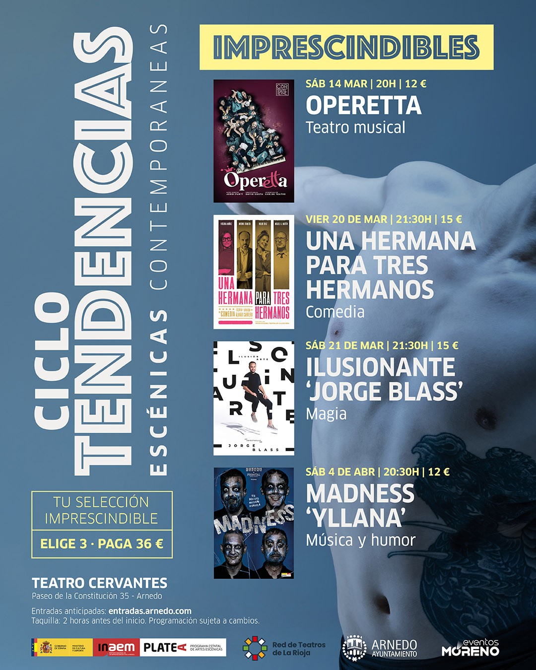 Como novedad, el ciclo incorpora un bono especial de 36 euros que permitirá al público asistir a tres de los cuatro espectáculos del programa. De esta forma, quienes utilicen el bono podrán asistir a cada función por 12 euros, con un descuento respecto al precio de la entrada individual. Desde el área de Cultura se ha explicado que este sistema busca reforzar la calidad de la programación y animar al público a asistir a varios espectáculos del ciclo, en lugar de acudir de forma puntual.