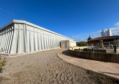 Este nuevo depósito rectangular tiene 6 metros de altura y dimensiones interiores de 52*20 metros. Está compuesto por 66 módulos perimetrales de 2 metros, 4 módulos de 1 metro y 4 módulos angulares y dividido en dos vasos independientes de 26*20 metros mediante paneles divisorios.
