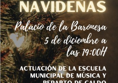 En cuanto a las actividades programadas, la primera de las citas tendrá lugar el jueves 5 de diciembre, con el ya tradicional encendido navideño a las 19h en los jardines del Palacio de la Baronesa y que contará con reparto de caldo y actuación de la Escuela Municipal de Música.