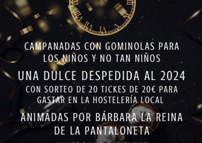 Y por segundo año volverán las ‘precampanadas’ de la asociación desde las 11.30h del lunes 30 de diciembre en la Plaza del Ayuntamiento para despedir el año con “12 gominolas” y el sorteo de 20 tickets por 20 euros para gastar en la hostelería local y la animación de “Bárbara, Reina de la Pantaloneta”