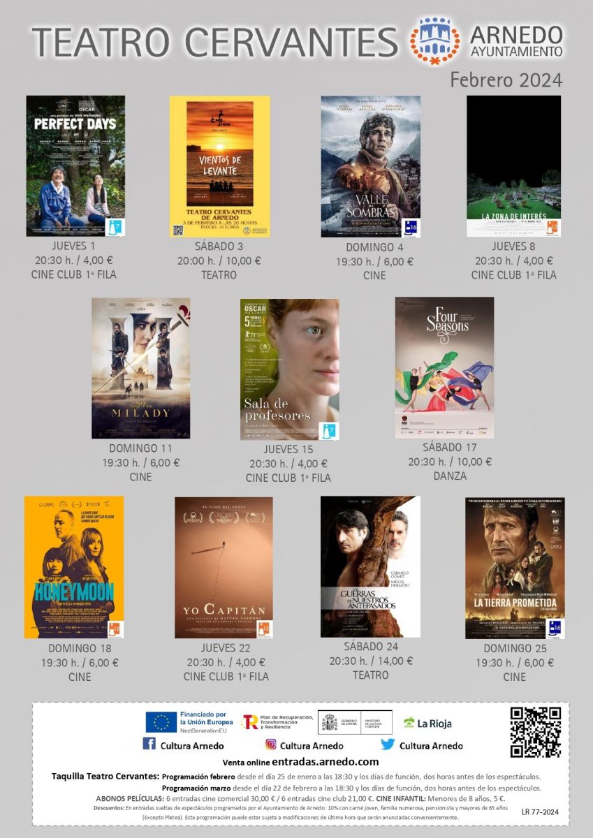 * Teatro Cervantes. Teléfono: 941.385200 Correo electrónico: teatrocervantes@arnedo.com