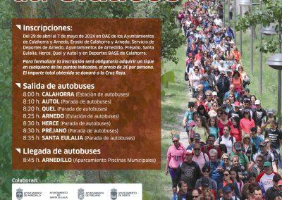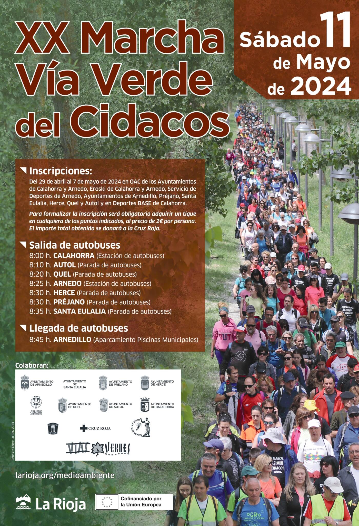 El Ayuntamiento de Calahorra organiza la Marcha Vía Verde del Cidacos con la colaboración del Gobierno de La Rioja y los ayuntamientos de Arnedo, Autol, Quel, Herce, Santa Eulalia, Arnedillo y Préjano y con la participación de Cruz Roja, Protección Civil y el Club Calagurris Atlético.
