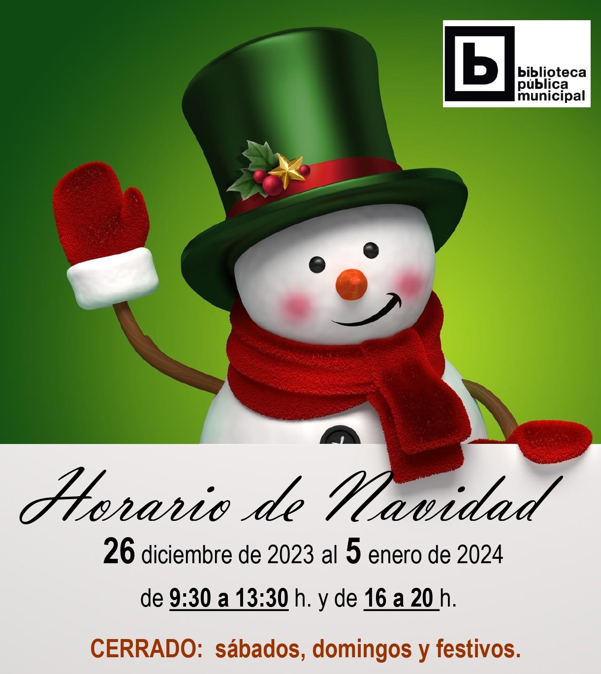 Horario para Navidad de la Biblioteca Pública Muncipal: