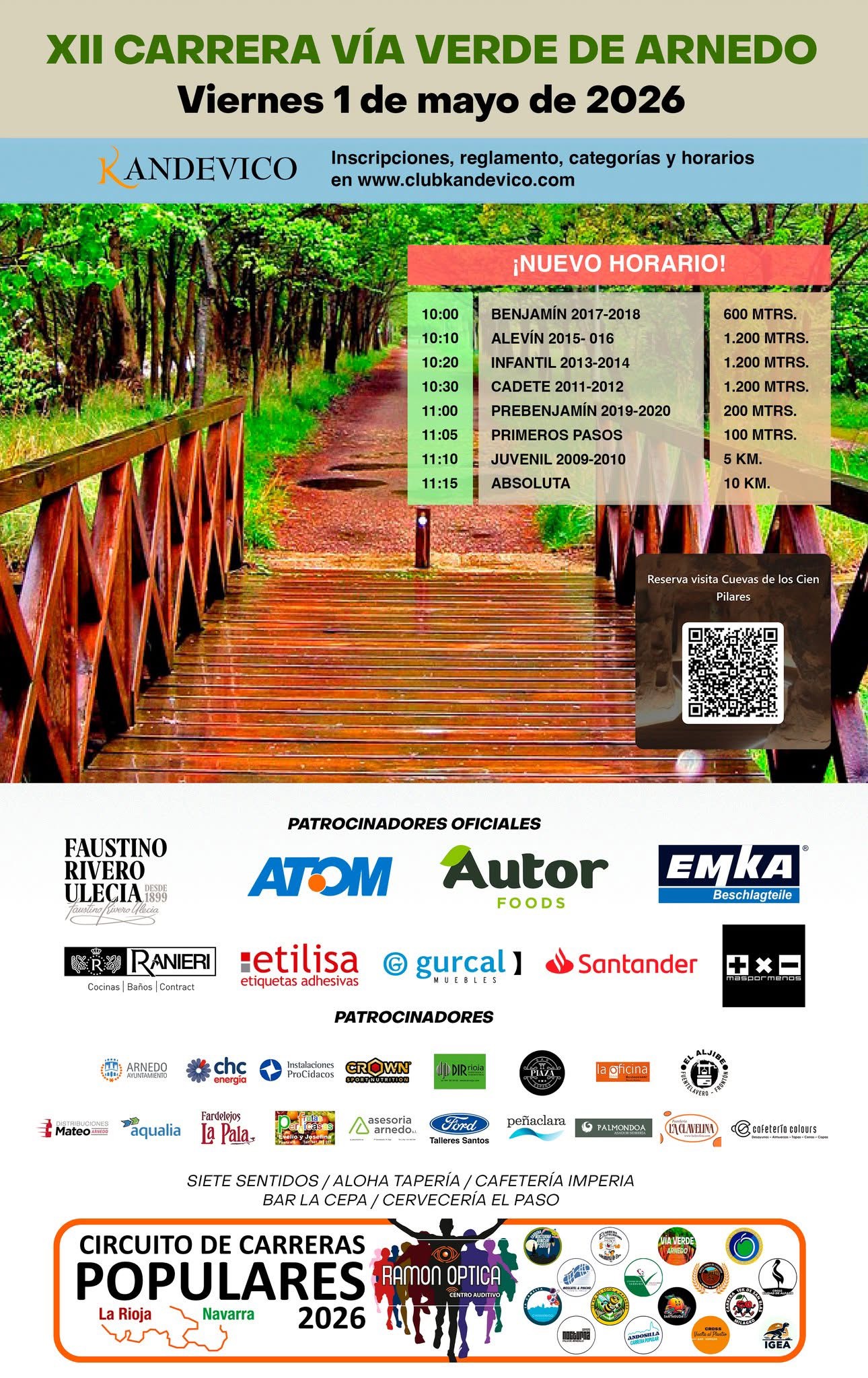 La concejal de Deportes de Arnedo, Violeta González, ha acompañado esta mañana a Chema Moreno y Toño Sáenz, del Club de Correr Kan de Vico, en la presentación de la 12ª edición de la Carrera Vía Verde de Arnedo, que se celebrará el próximo fin de semana coincidiendo con la festividad del 1º de mayo. Este evento se ha consolidado como una de las pruebas más populares de la región, destacándose por su recorrido de 10 km por la Vía Verde del Cidacos, un trazado llano que permite a los participantes disfrutar de un paisaje natural impresionante.