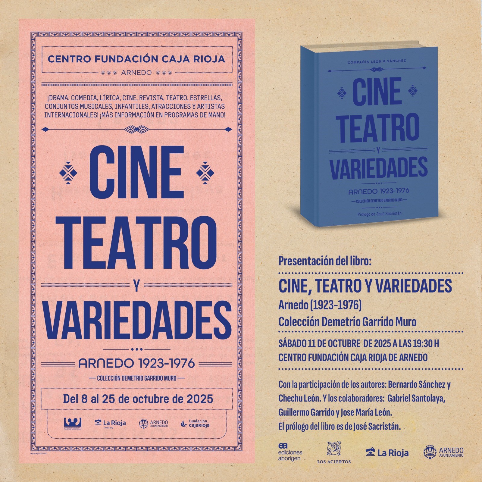 El Centro Fundación Caja Rioja de Arnedo ha acogido esta mañana la presentación de la exposición “Cine, Teatro y Variedades”, una muestra que rescata y pone en valor parte fundamental de la memoria cultural de la ciudad, a través de la colección personal de Demetrio Garrido Muro, empresario del histórico Teatro Cervantes.