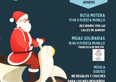 El presidente del colectivo, Javier Martínez, ha explicado que las actividades de esta “I Papanoelada solidaria” comenzarán a las cinco de la tarde con la concentración de los moteros participantes en la Puerta Munillo, para iniciar desde allí un recorrido por las calles de la ciudad. Una hora más tarde, también en la Puerta Munillo, habrá una degustación de migas solidarias, además de ambientación musical, sorteos y golosinas para los más pequeños.