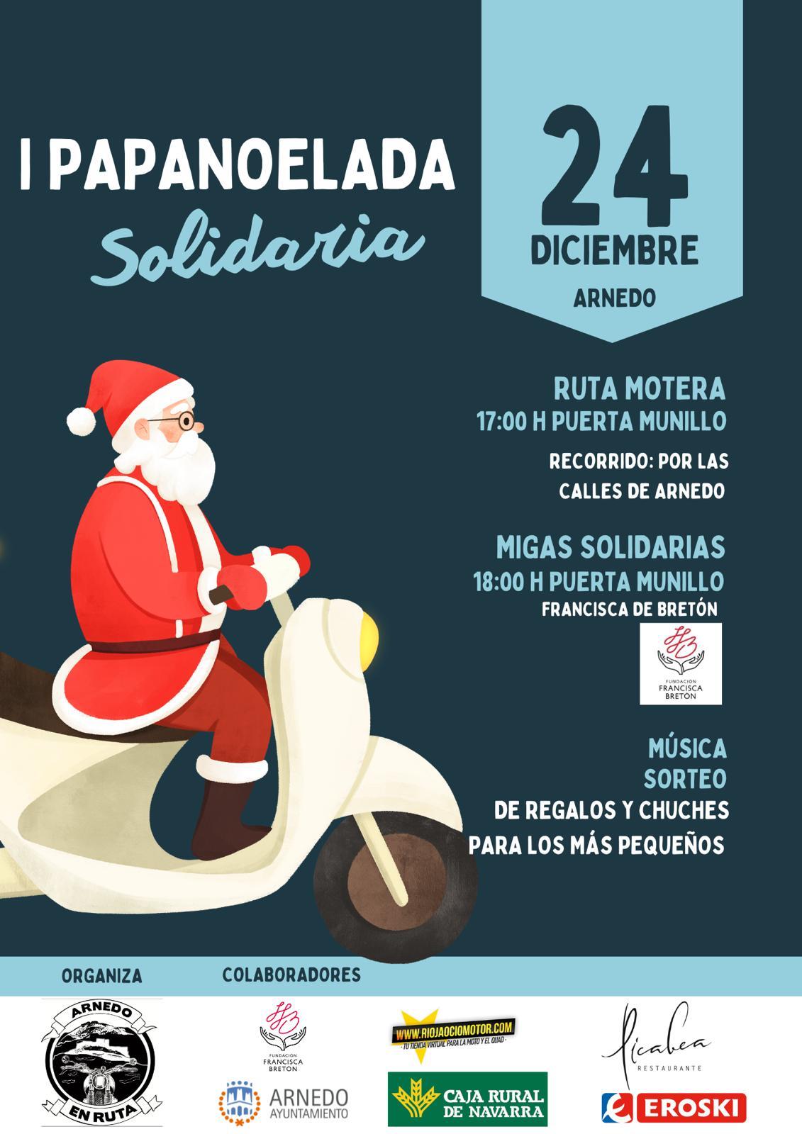 En la mañana de este jueves 12 de diciembre se ha presentado de la mano de la asociación motera “Arnedo en Ruta” la “I Papanoelada Solidaria”, un encuentro de aficionados a las motos que recaudará fondos para la Fundación Francisca Bretón y que cuenta con el apoyo del Ayuntamiento y varias empresas y establecimientos .