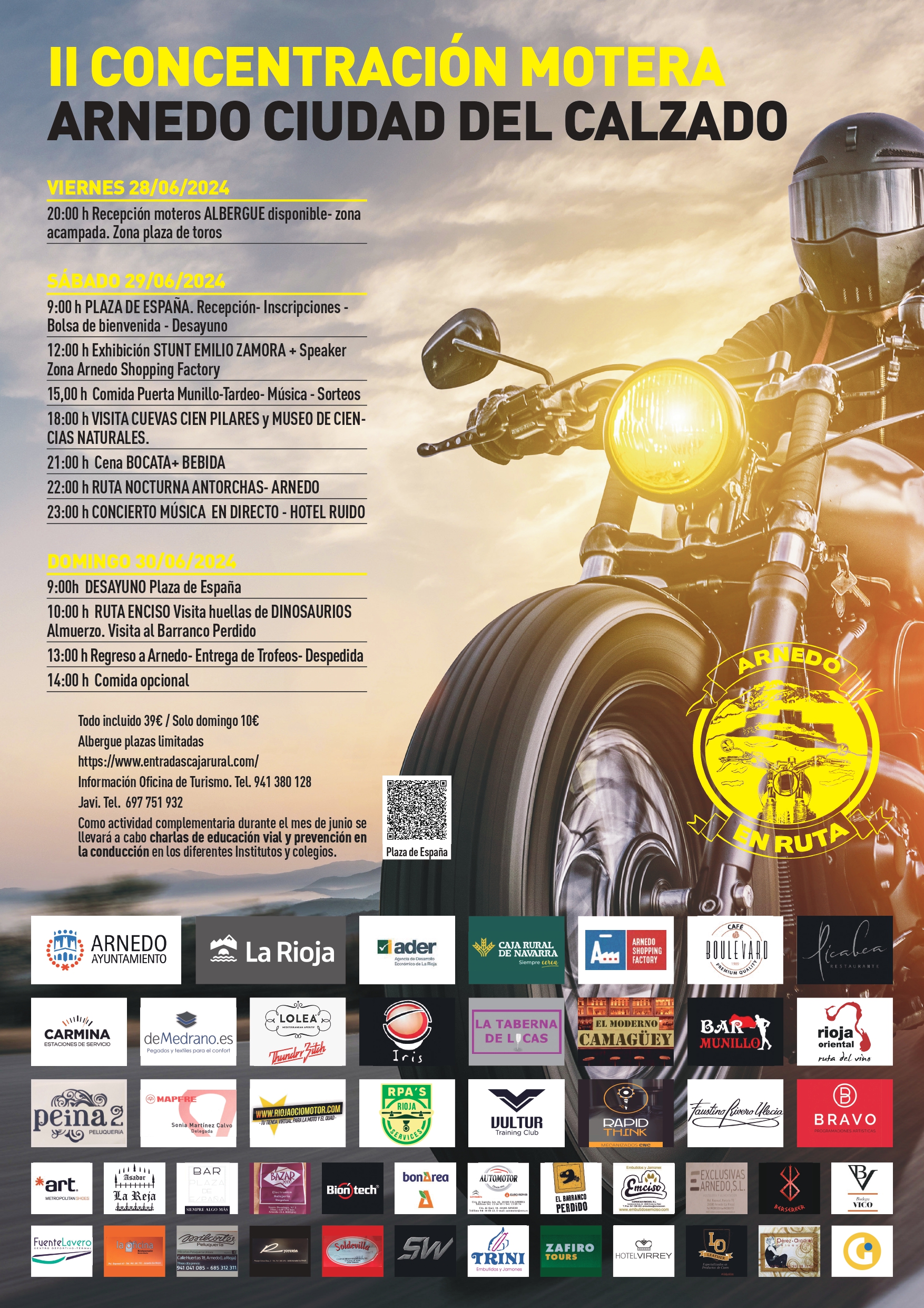 Los interesados en inscribirse en esta “II Concentración Motera Arnedo, Ciudad del Calzado” pueden hacerlo en la web www.entradascajarural.com y recibir más información en la oficina de turismo de Arnedo o en el teléfono 697.751.932.