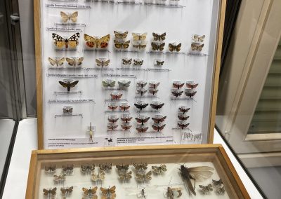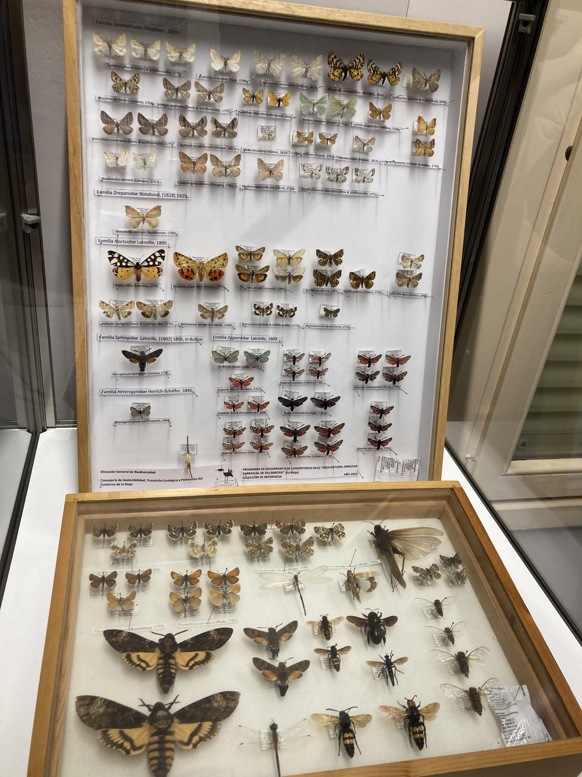La exposición está formada por diferentes paneles y las vitrinas con la colección de mariposas del carrascal de Villarroya “que se hizo en el año 2022 por un encargo del Gobierno de La Rioja” y que, según quedó establecido “estará a disposición de científicos y para la divulgación”.