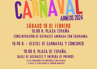 Anímate, ven a celebrar el Carnaval y participa en los actos programados para el 10 y el 11 de febrero de 2024. Como siempre, Arnedo se llenará de color, imaginación y diversión. Si te gusta disfrazarte no dejes pasar esta ocasión y apúntate al Concurso del Carnaval.