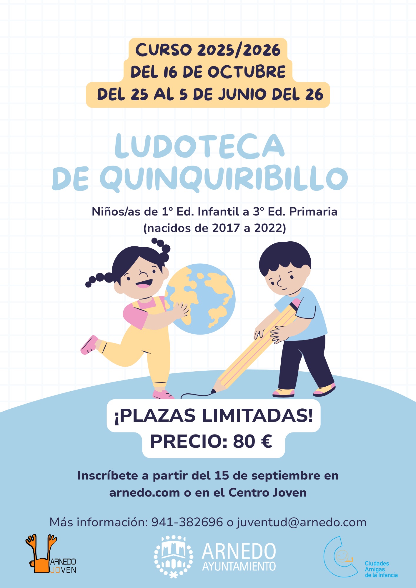 La ludoteca municipal de Arnedo volverá a abrir sus puertas este otoño. Esta mañana, la concejala de Juventud, Sandra Rodríguez Sebastián, ha presentado el nuevo curso de Quinquiribillo, un espacio pensado para que los niños y niñas de la ciudad disfruten de su tiempo libre jugando, aprendiendo y compartiendo.