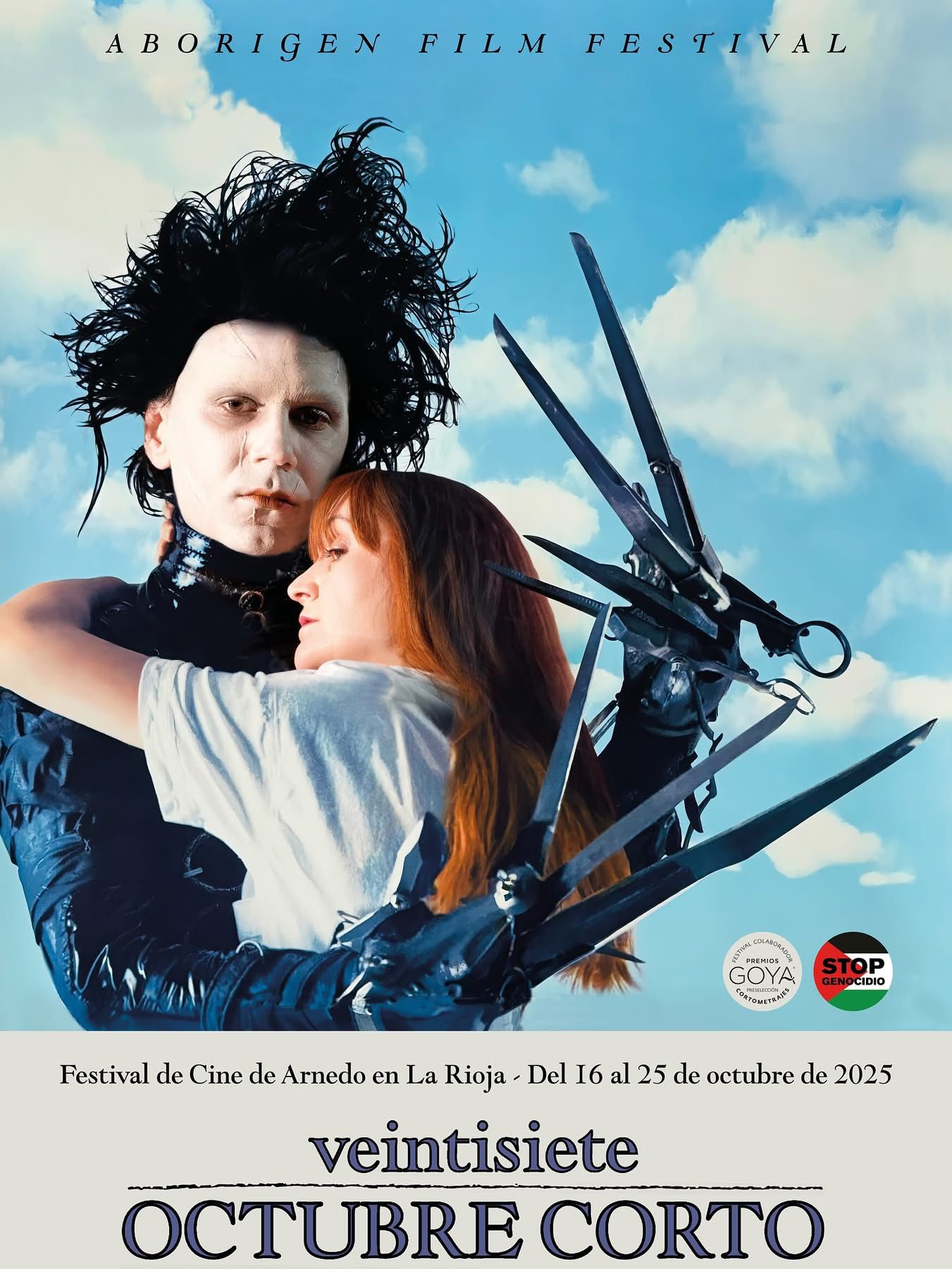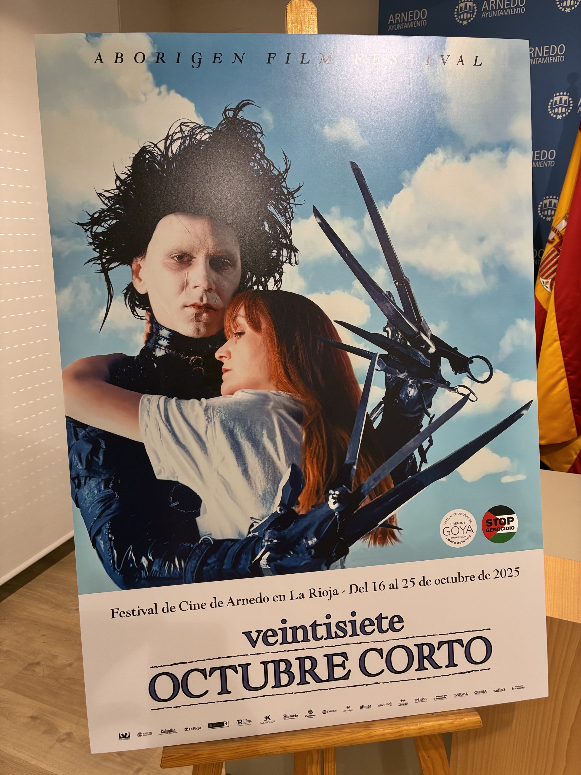 El Festival de Cine Octubre Corto de Arnedo ha presentado hoy el cartel oficial de su 27ª edición, que se celebrará del 16 al 25 de octubre. En esta ocasión, el certamen rinde homenaje a la vulnerabilidad y la ternura a través del icónico personaje de Eduardo Manostijeras, que cumple 35 años desde su estreno. La imagen del cartel, inspirada en la sensibilidad del célebre personaje de Tim Burton, busca reivindicar valores como la compasión, la inocencia y la empatía en un contexto mundial marcado por el odio, la guerra y la polarización.