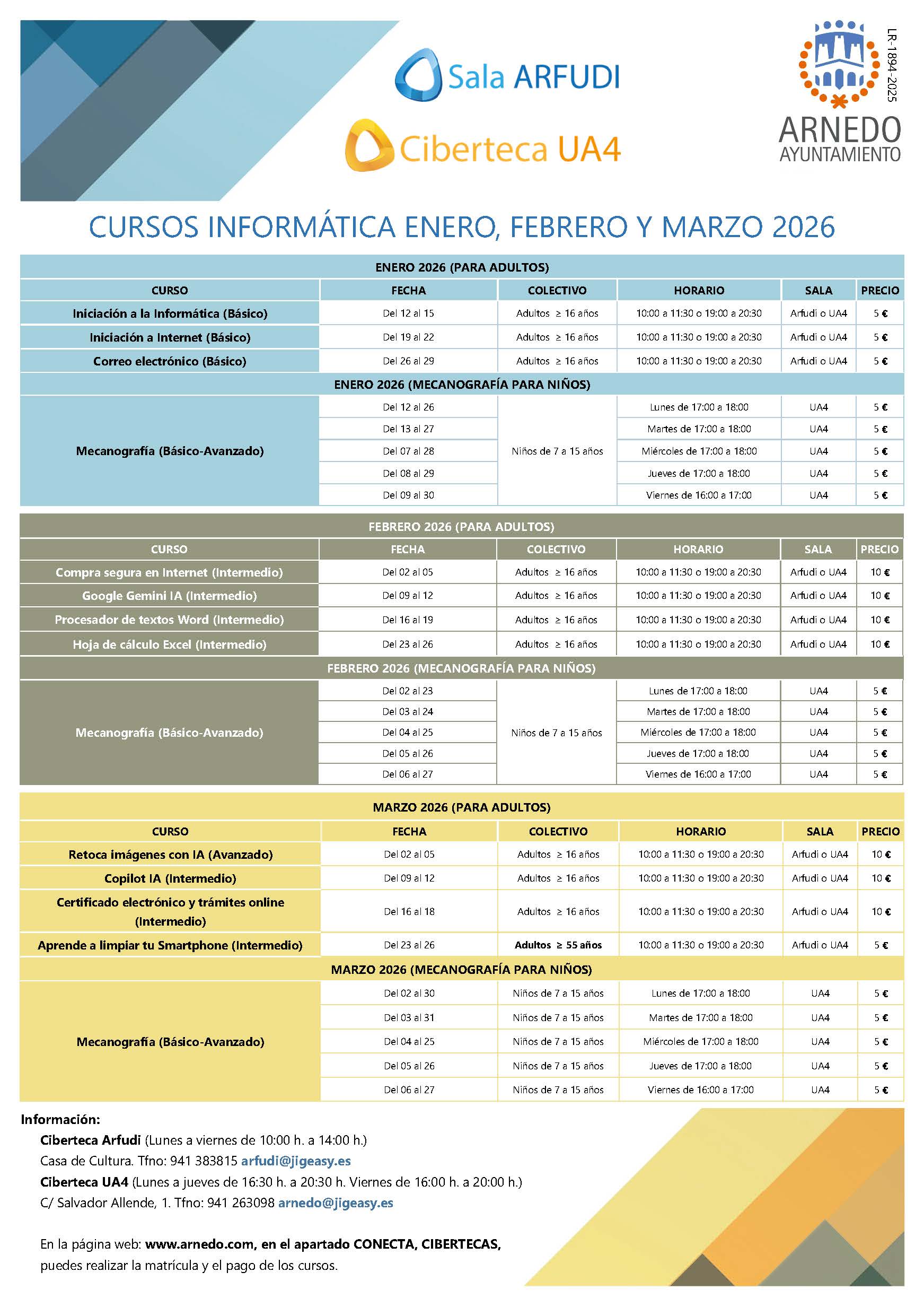 ENERO, ADULTOS Y NIÑOS (Ciberteca Arfudi y UA4):